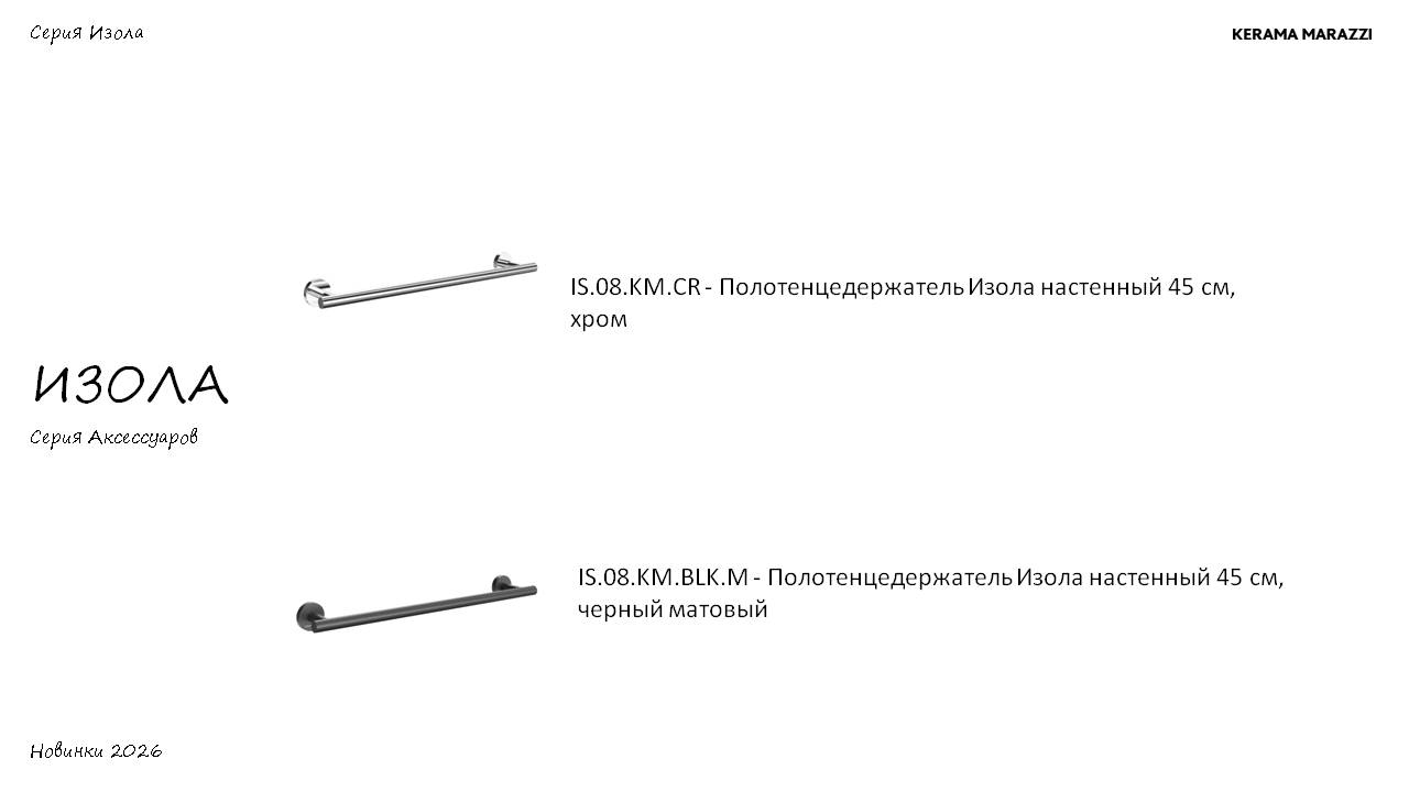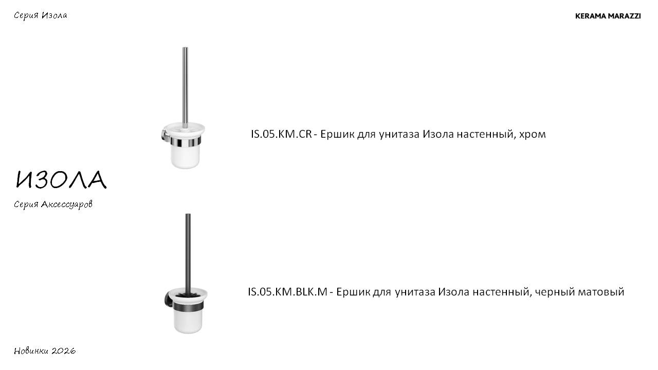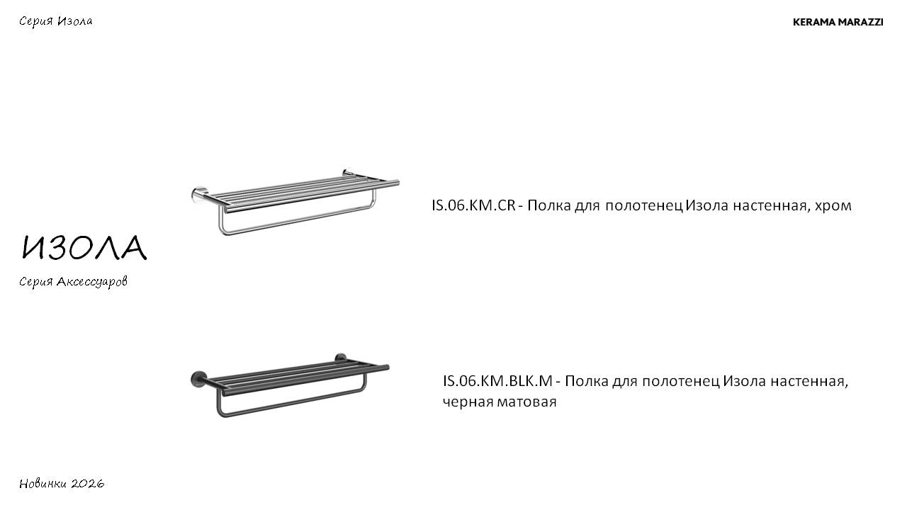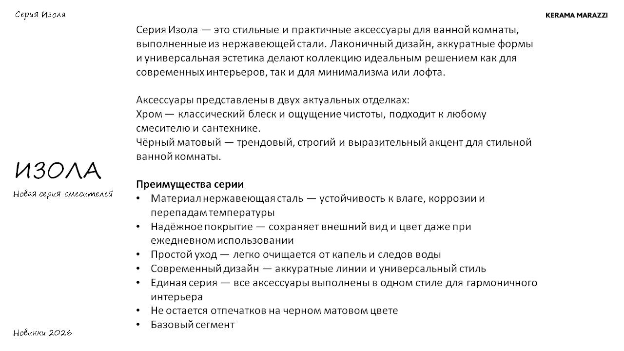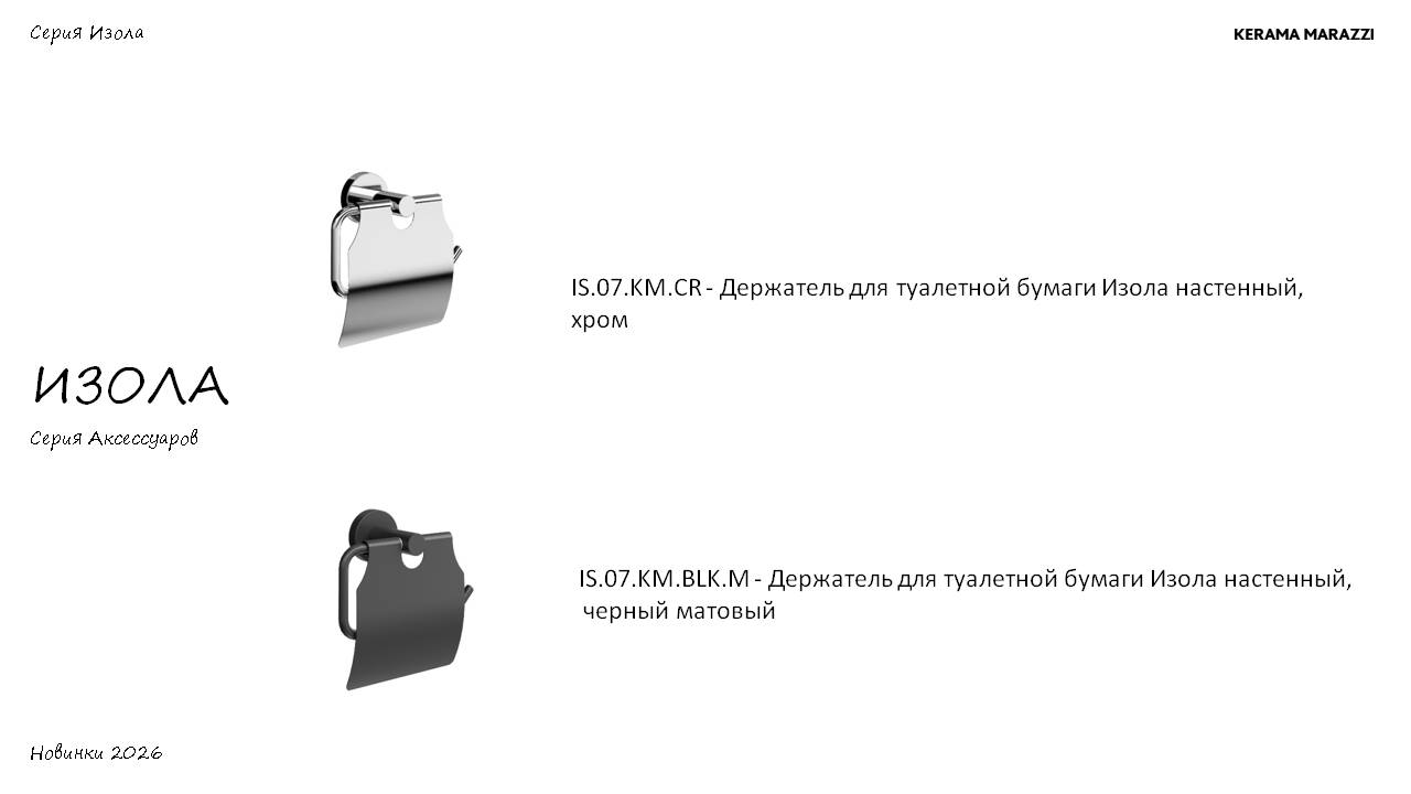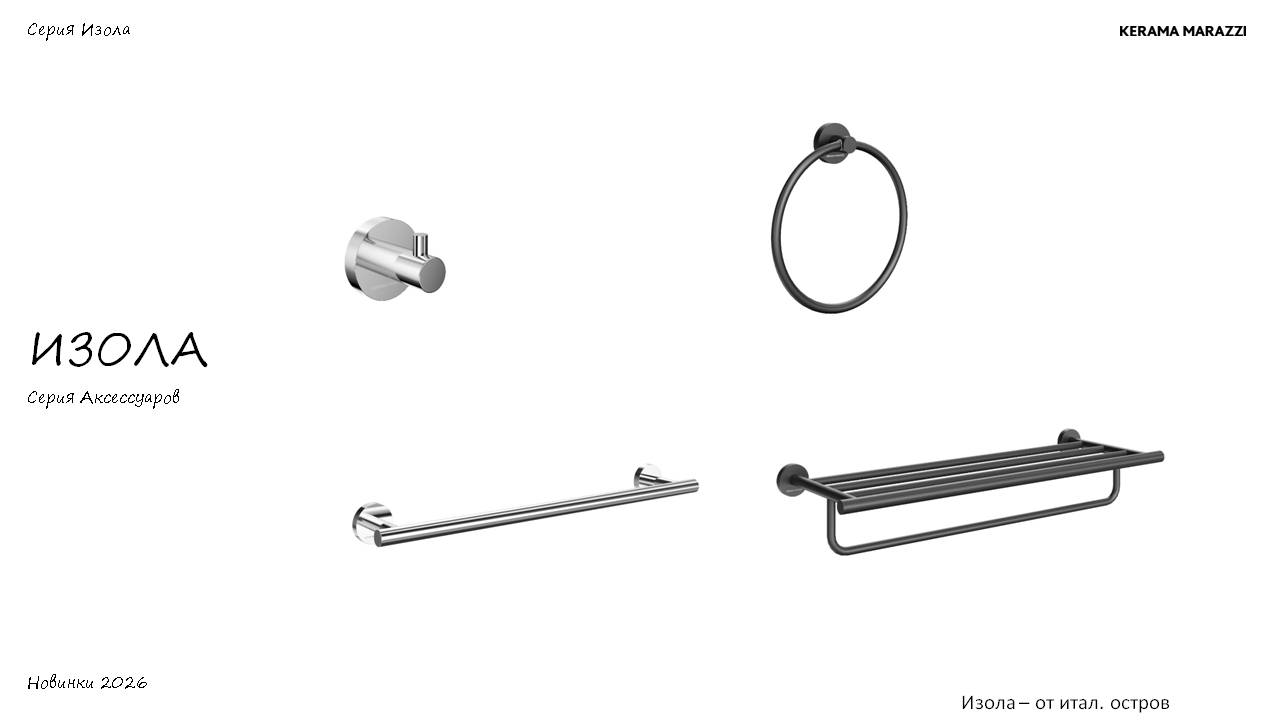 Изола – новая серия стильных и практичных аксессуаров для ванной комнаты, вдохновленная итальянским дизайном. Название коллекции происходит от слова «остров», символизируя создание особого пространства комфорта в вашем доме.