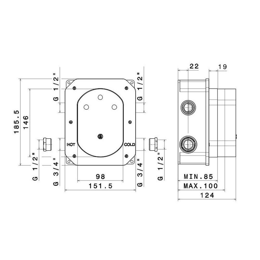Универсальная внутренняя часть для термостатического кнопочного смесителя на два потока для душа