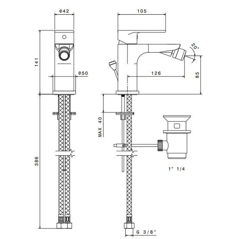 Смеситель для биде PIANO однорычажный с донным клапаном, хром глянец