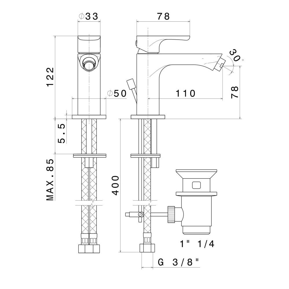 Смеситель для биде OLE однорычажный с донным клапаном, хром глянец