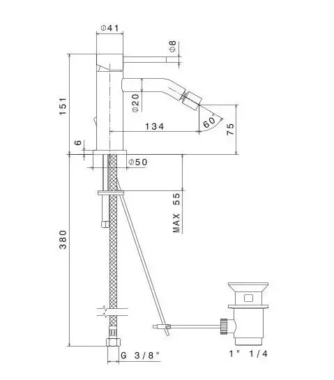 Смеситель для биде ETERNA с донным клапаном, брашированная медь