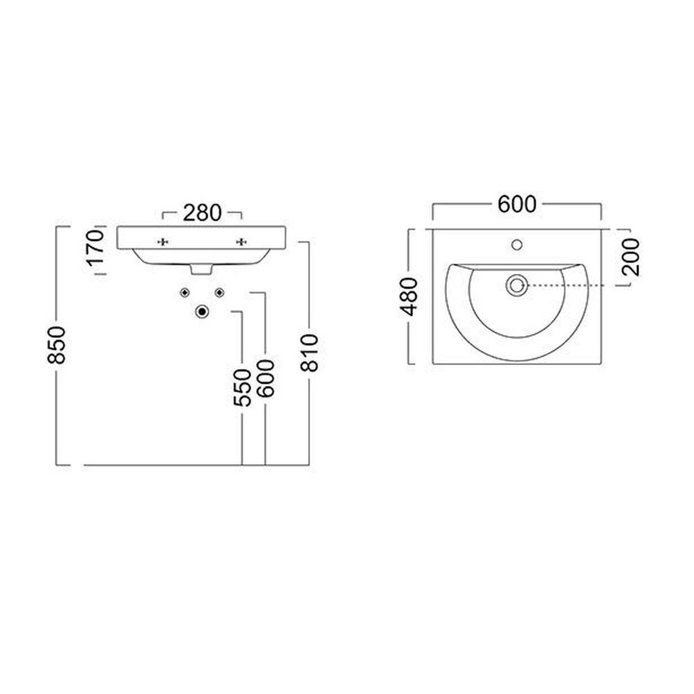 Раковина BUONGIORNO подвесная/мебельная 60, белая глянцевая