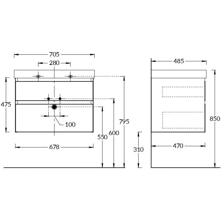 Тумба CUBO подвесная с ящиками 70, белая матовая