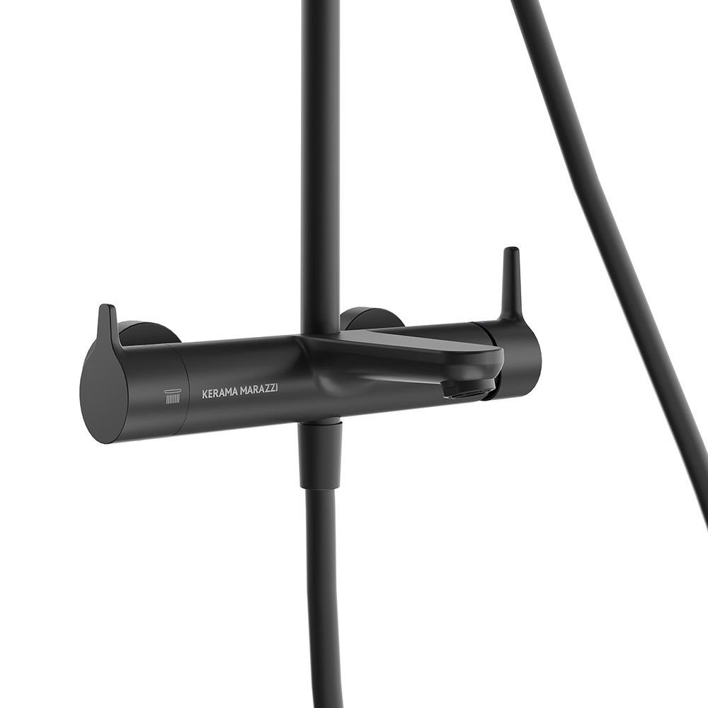 Душевая колонна FONTE на 3 потока с фикс.изливом и механическим смесителем, черный матовый