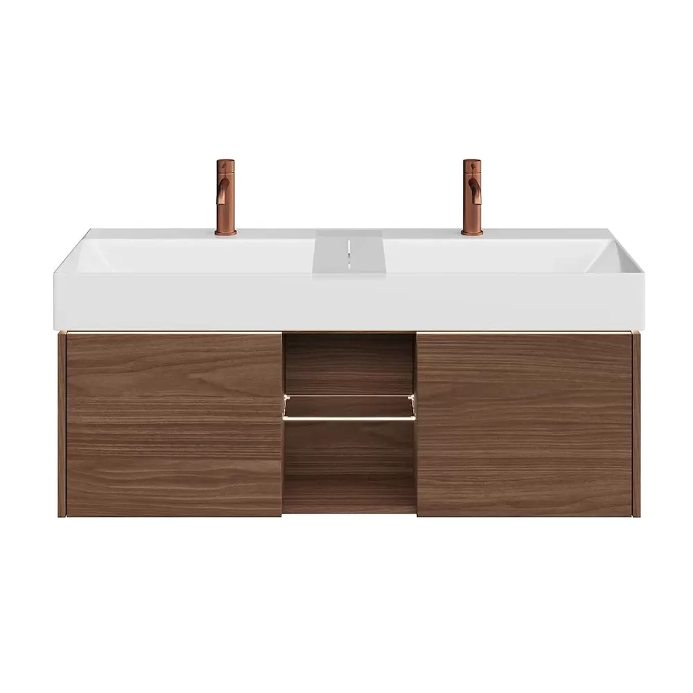 Тумба GRANDE подвесная 120, 2 ящика + открытая зона, структурированный орех