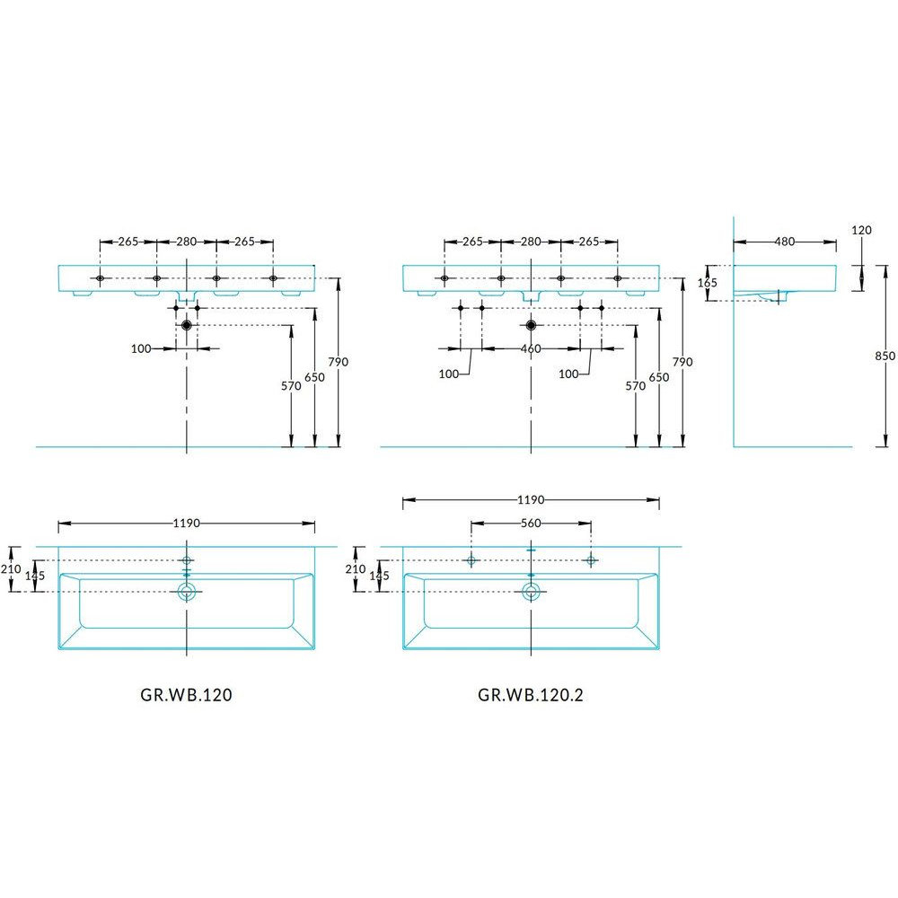 Раковина GRANDE мебельная\подвесная 120 c двумя отвер. под смесители с крепежом, белая глянцевая