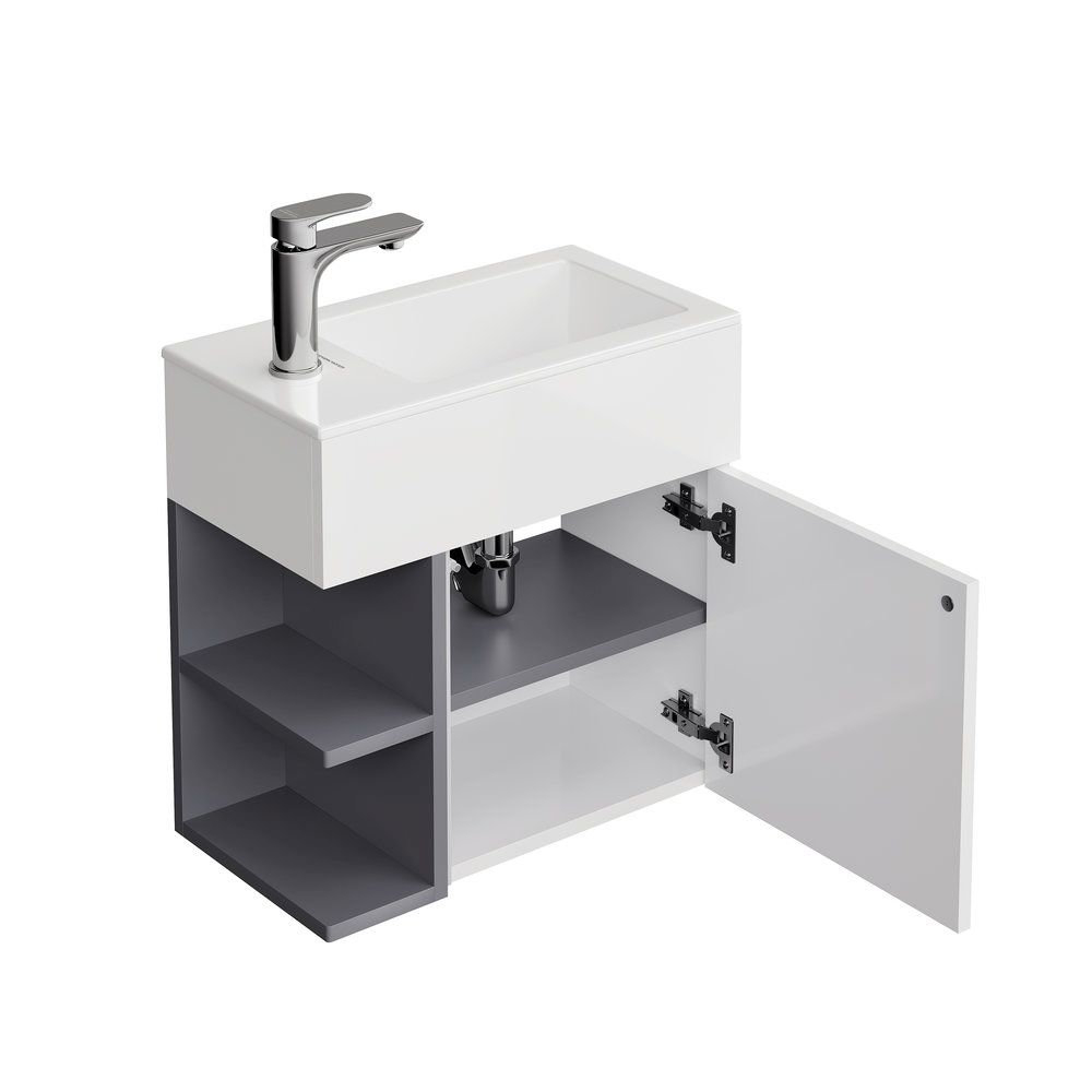 Тумба LATO подвесная 50 см, дверца push + полочки, утренний серый+серый пыльный матовый