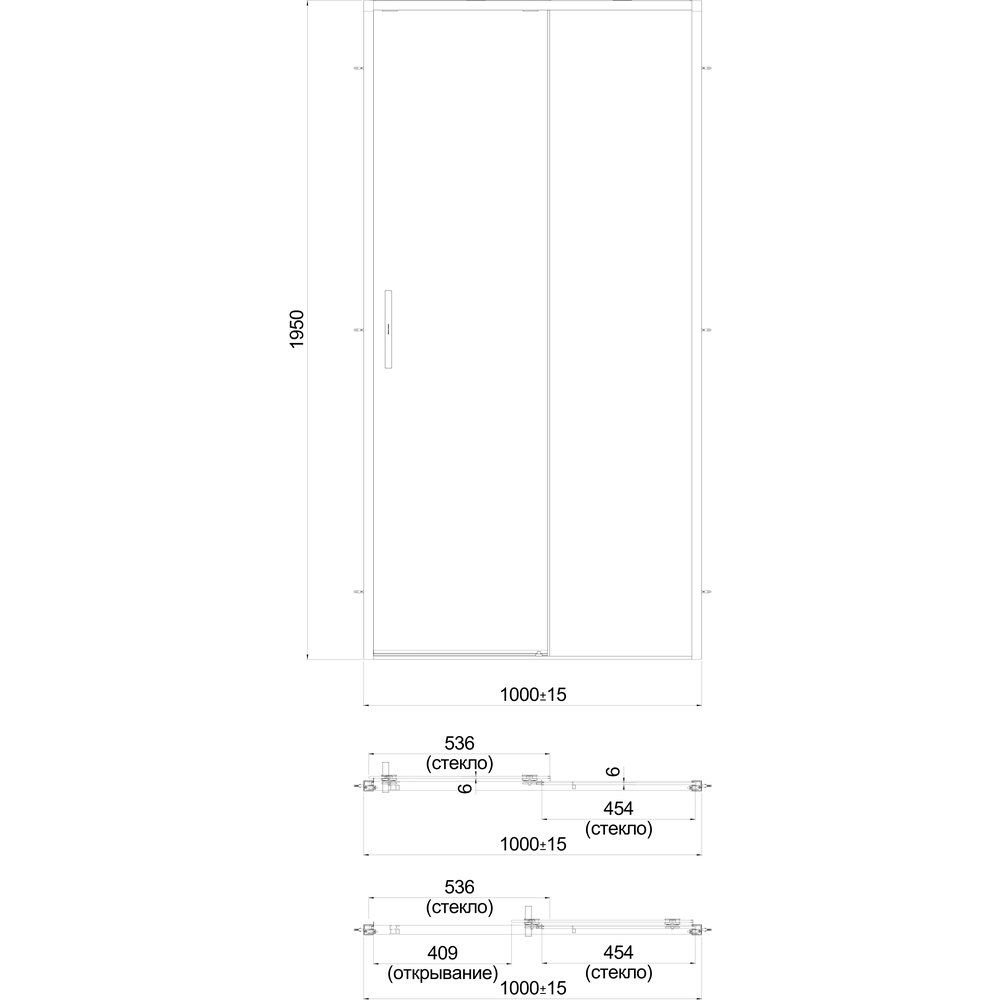 Душевая дверь LINDO, раздвижная с функцией soft close, 100х195, матовый черный