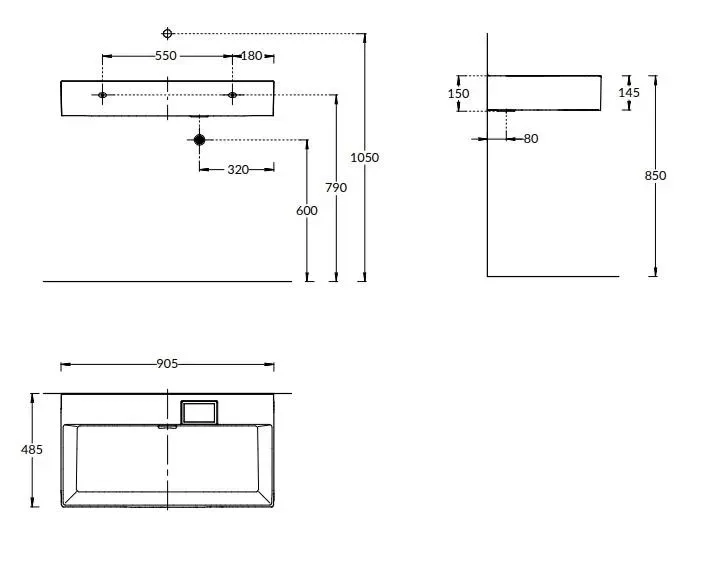 Раковина LOGICA мебельная\подвесная без отверстий 90, белая глянцевая