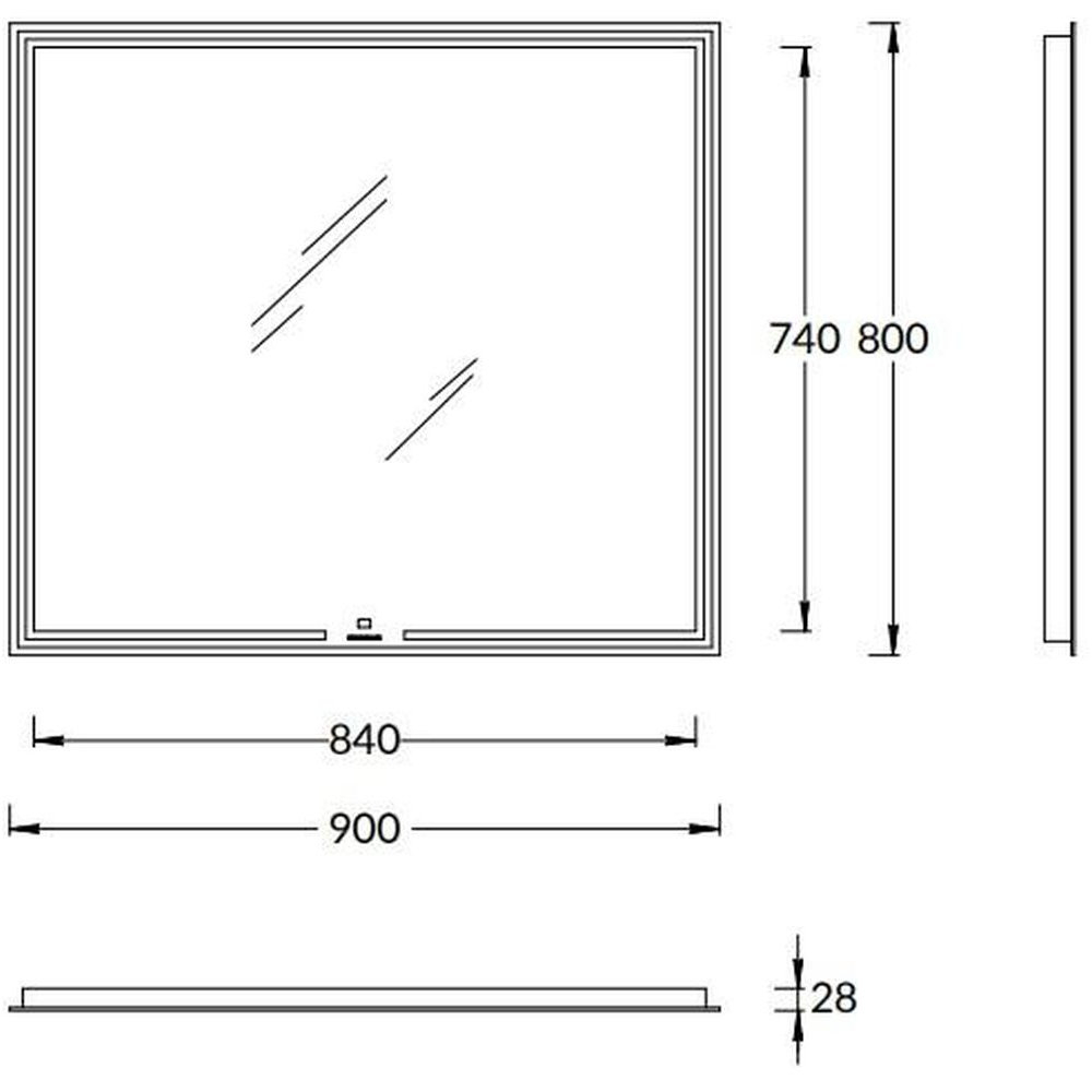 Зеркало MIO прямоугольное с диммером 90, белое