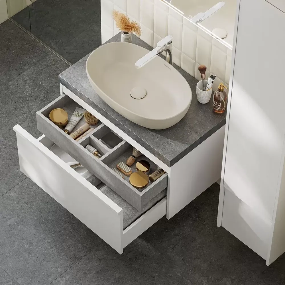 Тумба MODULA подвесная 80 с ящиком 1+1, белая глянцевая