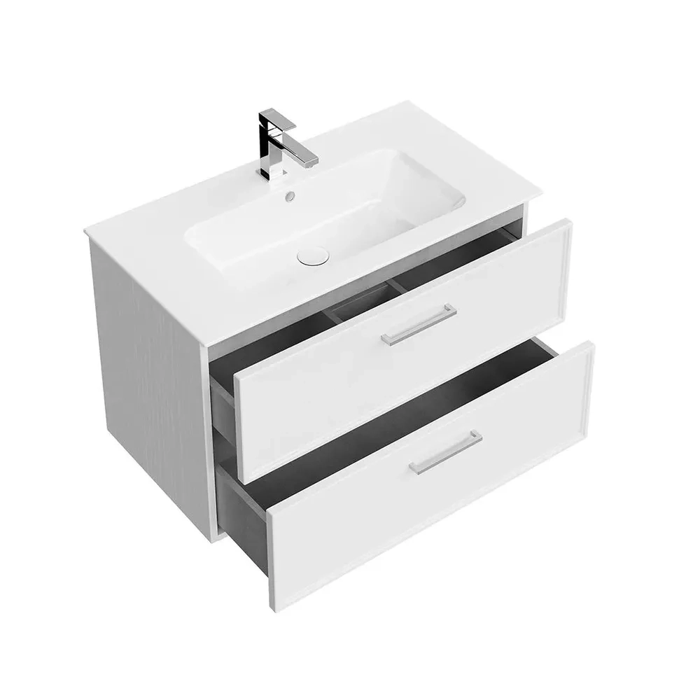 Тумба PIANO Classic подвесная 85 см, 2 ящика, ясень белый матовый