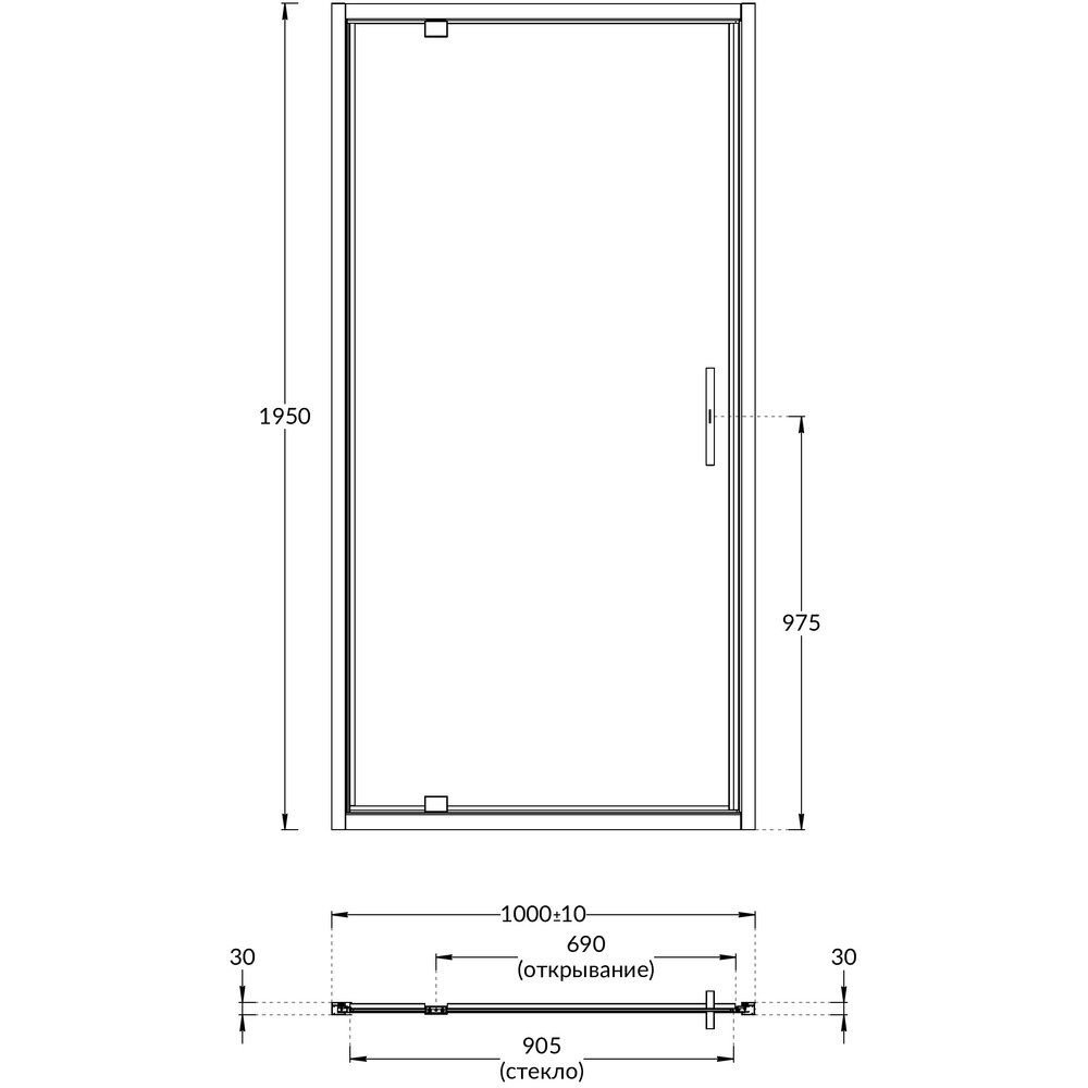 Душевая дверь VETRO, распашная, 100х195, матовый черный