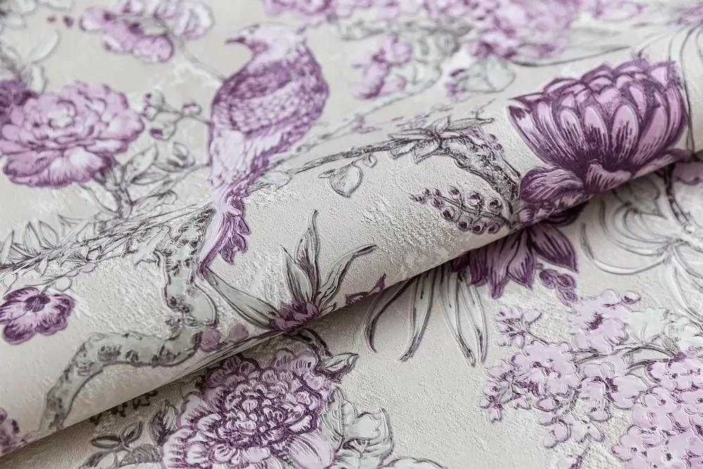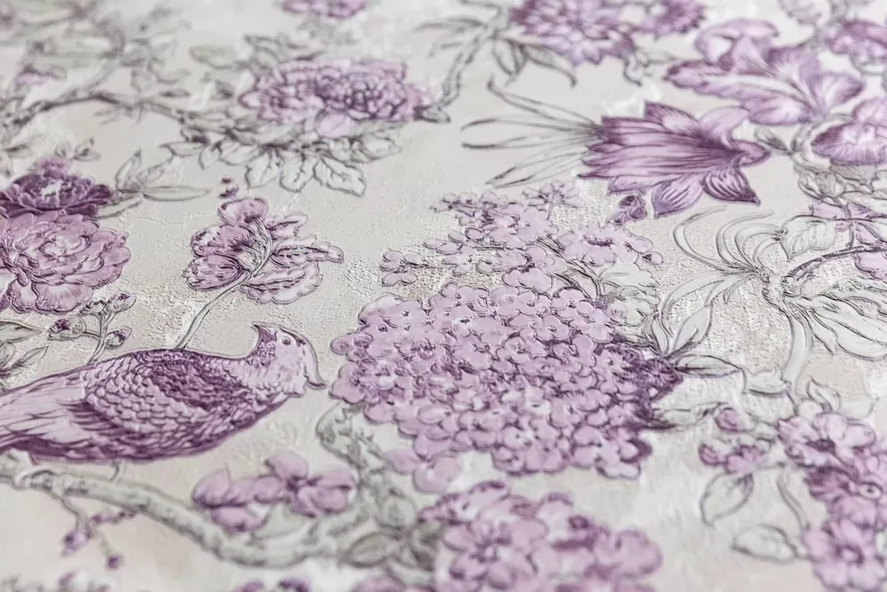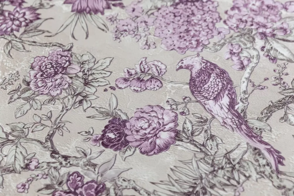 Обои виниловые Азулежу мотив, бежево-фиолетовый