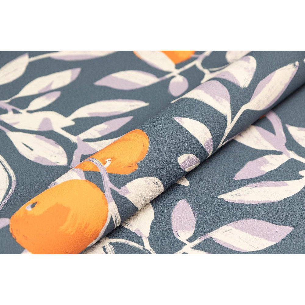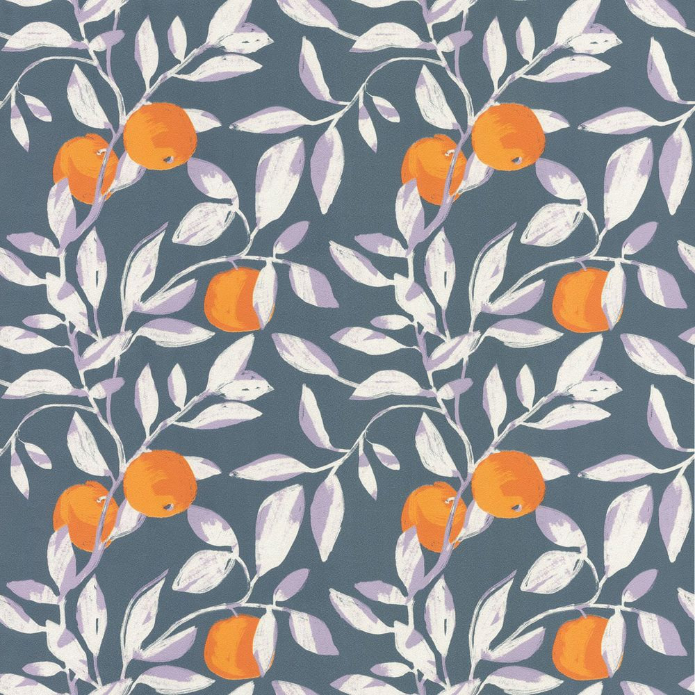 Обои виниловые Шафран мотив, синий, апельсины